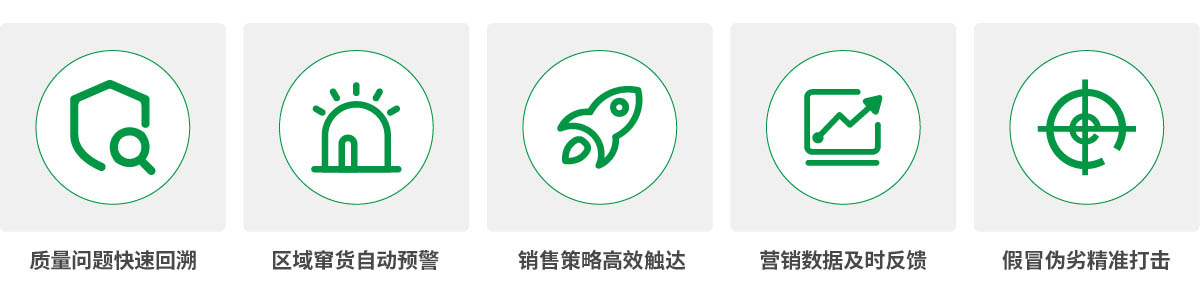 一物一码数字化系统的建立,实现品牌与消费者的直接沟通,协助品牌构建品质可一键溯源、真伪可一扫验证的消费者服务体系,同时以强大的数据服务能力,通过扫码信息获取,帮助企业精准排查假冒产品和售假点。