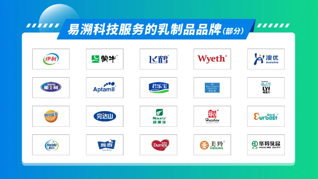 在奶粉行业,易溯科技服务了蒙牛、伊利、飞鹤、惠氏、澳优、君乐宝、欧比佳、辉山、A2等品牌企业,为其构建一物一码全链路数字化运营管理体系。展望未来,易溯科技将不断深耕奶粉行业,持续为更多优秀的奶粉企业提供出彩的数字化范本。